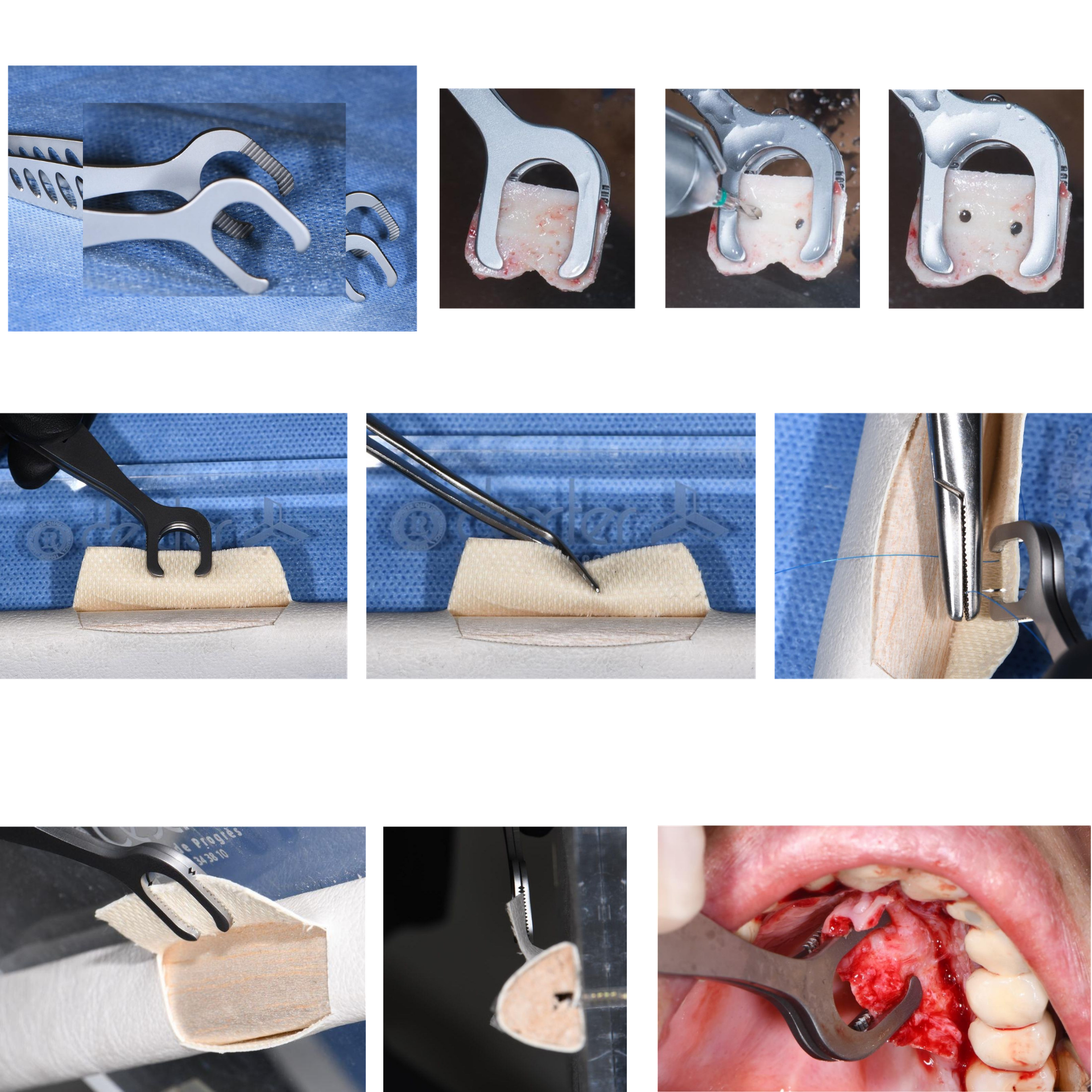 Habituellement, un écarteur est utilisé pour maintenir le lambeau ouvert et, dans un second temps, lorsque le matériau osseux est mis en place, des pinces sont utilisées pour repositionner le lambeau tout en retirant l’écarteur.